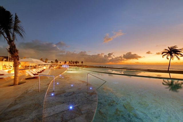 It won’t be wrong to call it an exclusive playground for couples where they can indulge in fun and romance. It features a chic and cozy Mexican-inspired decor, all-inclusive amenities, and spacious rooms appointed with private Jacuzzis and swim-out pools. There is also a sky bar, a library, and a butler service.