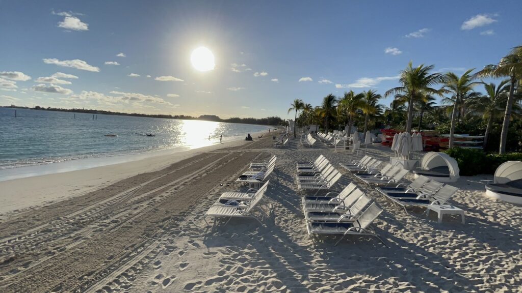 Grand Hyatt Baha Mar is set on Nassau’s famous Cable Beach, a beautiful stretch of white sand and blue water. The beach at Grand Hyatt Baha Mar is 3,000 feet long, with plenty of lounge chairs and umbrellas for relaxing.