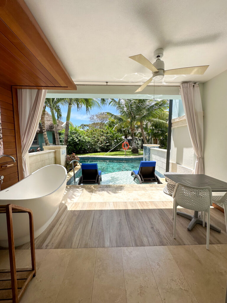 We stayed in one of the Beachfront Penthouse Club Level Suites with a Balcony Tranquility Soaking Tub. Penthouse suites are on the top levels of the resort and overlook the pool area and the beach behind that.