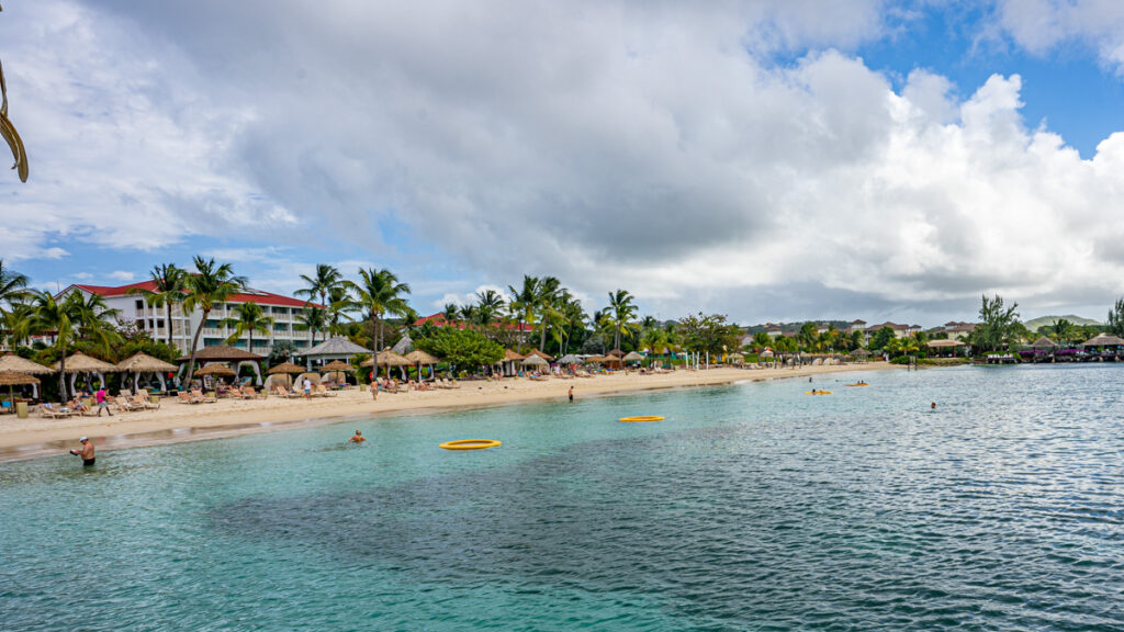One of the main highlights at Sandals Grande St Lucian is the beach. We found the resort beach calm and clear. It starts near the dock and goes all the way across the resort. We found a lively vibe near the middle where you could hear the DJ and activities from the water.