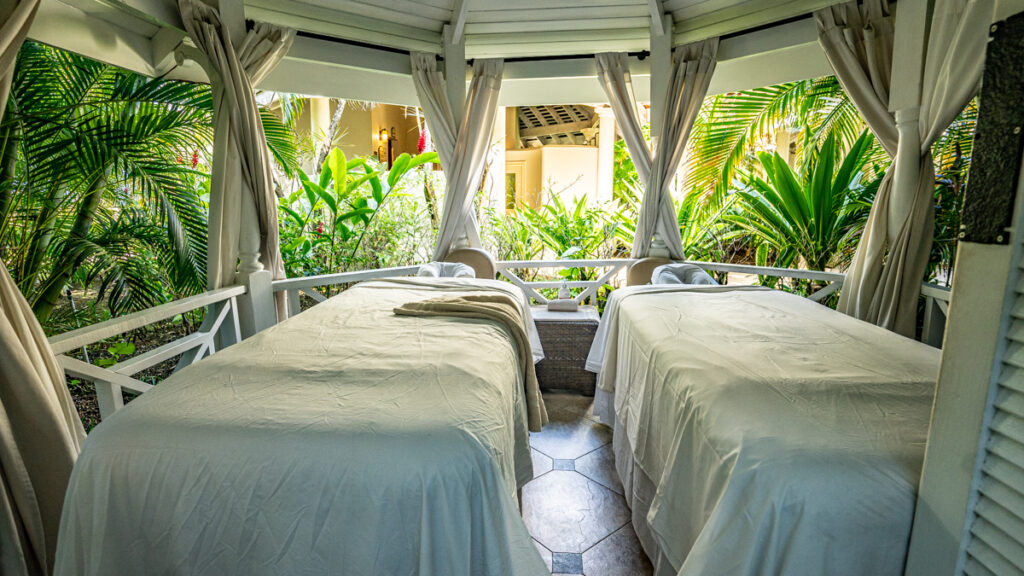 If you get married and then honeymoon at Sandals Grande St. Lucian, or if you come here within a year of your wedding date, you’ll get Sandals’ complimentary honeymoon package.