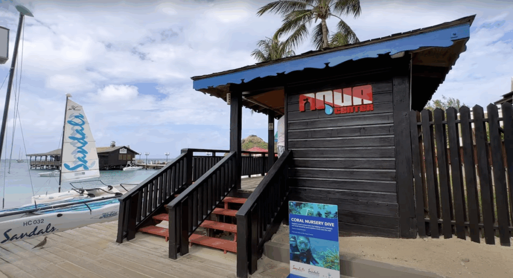You also have access to 2 golf courses, with complimentary transfer and greens fees included (one is at Sandals Regency La Toc; a 9-hole course, it’s currently closed). In fact, if you want to stay at the Sandals resort that is closest to an 18-hole golf course, the best St. Lucia Sandals golf resort is Sandals Grande St. Lucian.