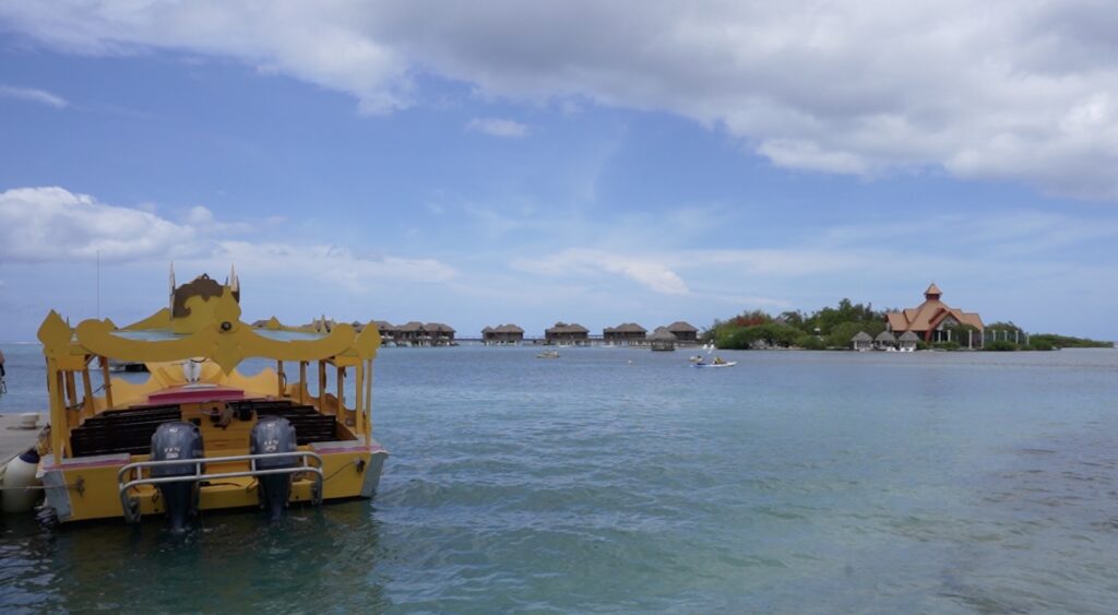 Local vegetation and fencing separate the clothing-optional area from the rest of the island. (The island features a restaurant, pool with swim-up bar, and beach cabanas, as well as luxurious overwater bungalows; none of those areas are clothing optional.)