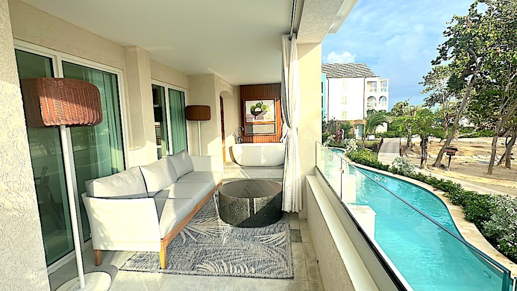 This area was in dire need of refurbishment and they gutted the rooms and completely renovated them. They extended the patios to allow for tranquility tubs and added a pool at the bottom to create swim-up suites.