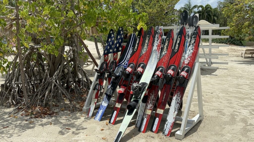 Sandals South Coast offers a full range of water sports including waterskiing, windsurfing, wakeboarding, tubing, scuba diving, snorkeling, paddleboarding, kayaking, and Hobie Cat sailing; equipment and instruction are included.