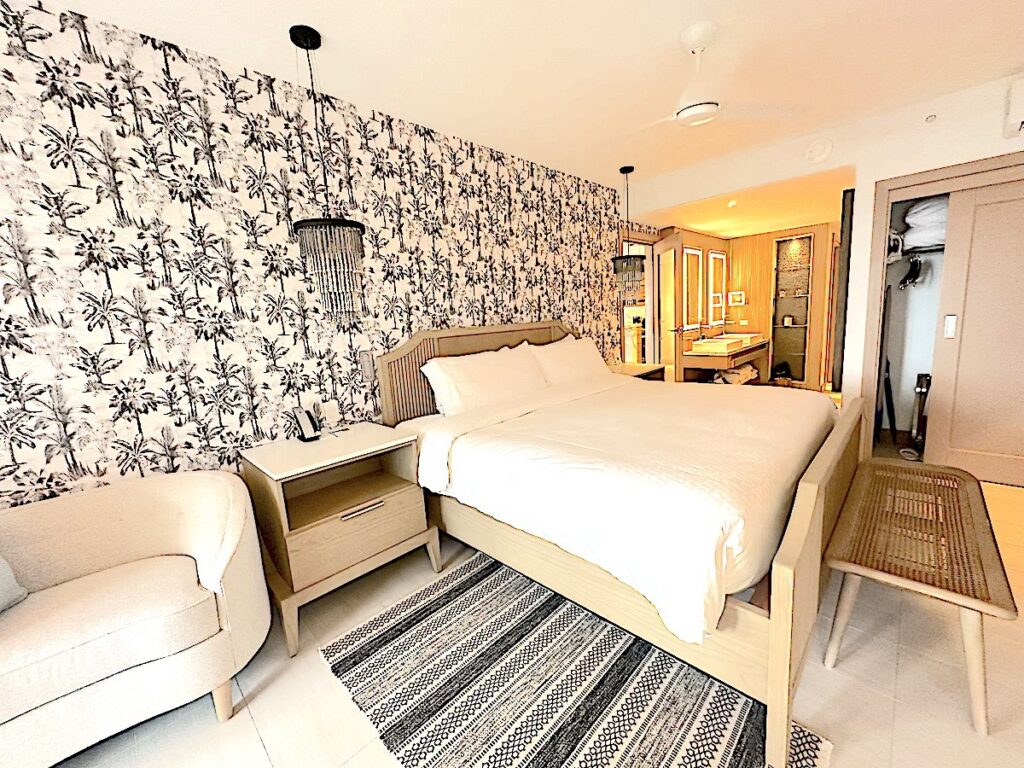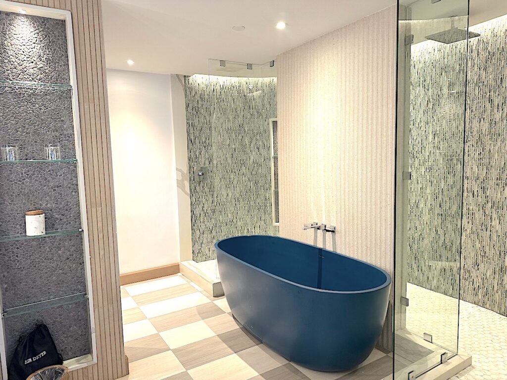 We stayed in the Longbeach Beachfront One Bedroom Butler Suite w/ Balcony Tranquility Soaking Tub. To create this room they combined two rooms to create a living room and bar area and a separate bedroom with the bathroom.