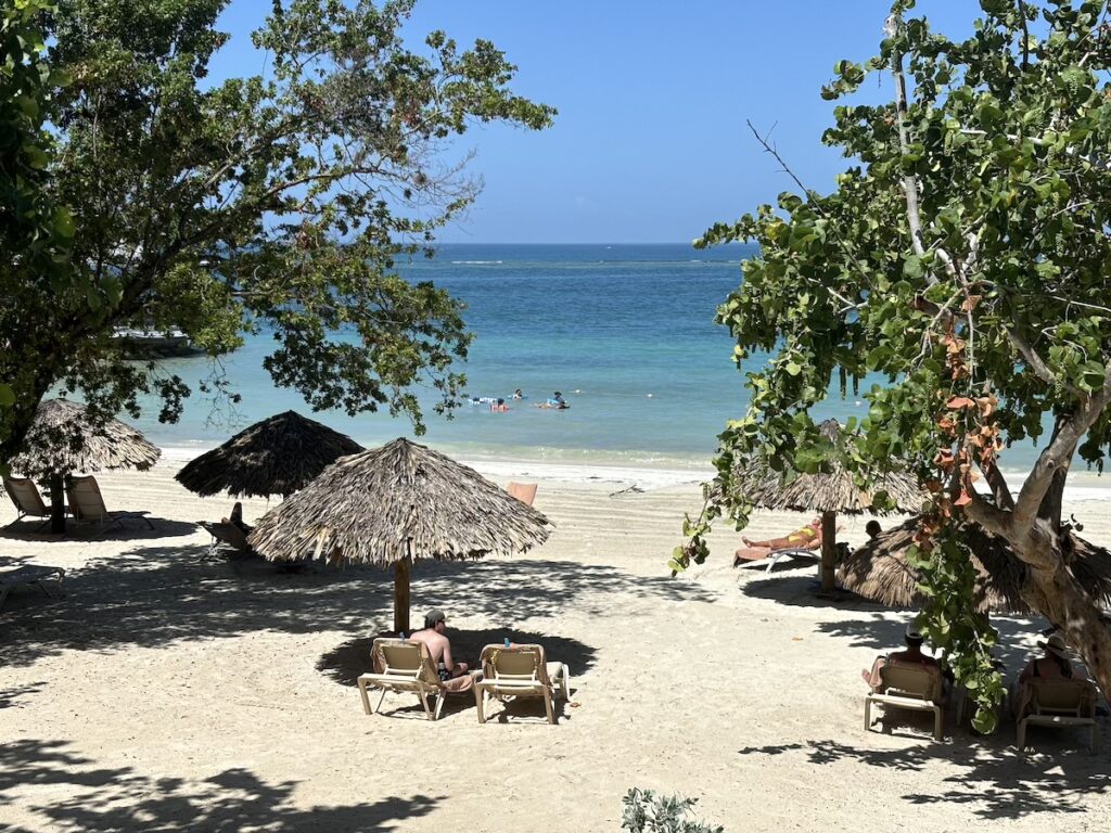 The beach at Sandals Royal Caribbean is smaller but it is a very social beach area that we liked. There is also the beach on the private island that is quiet and close to the Jerk Shack.